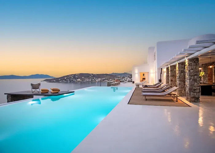 Under vistelsen i Maison Haute Mykonos Ornos kan gästerna delta i snorkling, dykning och cykling eller besöka Lilla Venedig, som ligger cirka 4 km bort. Den här villan, som ligger cirka 10 minuters bilresa från Kynthos-berget, har en terrass med utsikt över havet.